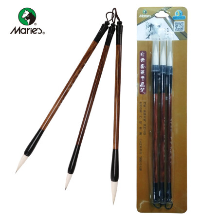 马利(Marie's)白云毛笔大中小3支装 白云羊毫毛笔大中小楷 书法山水工笔国画笔初学者学生练字毛笔G1333