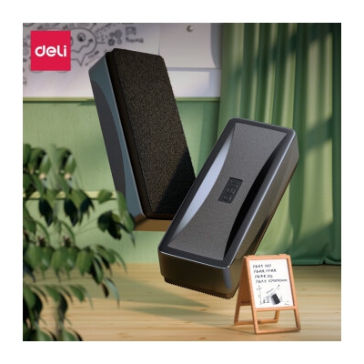 得力(deli) 磁性板擦大号白板笔擦黑...