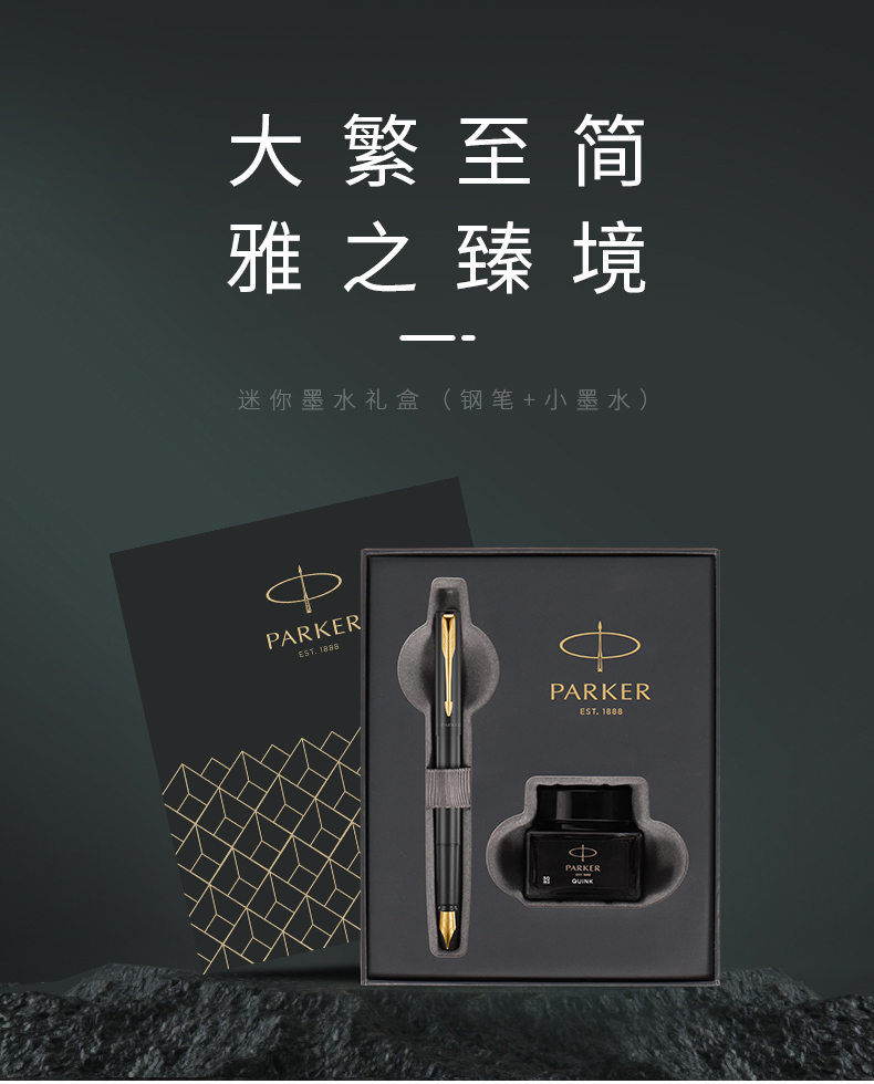 派克(PARKER)钢笔 签字笔 商务办公送礼 男女生日礼物 学生练字 威雅XL经典黑金夹墨水笔+深灰迷你墨水礼盒