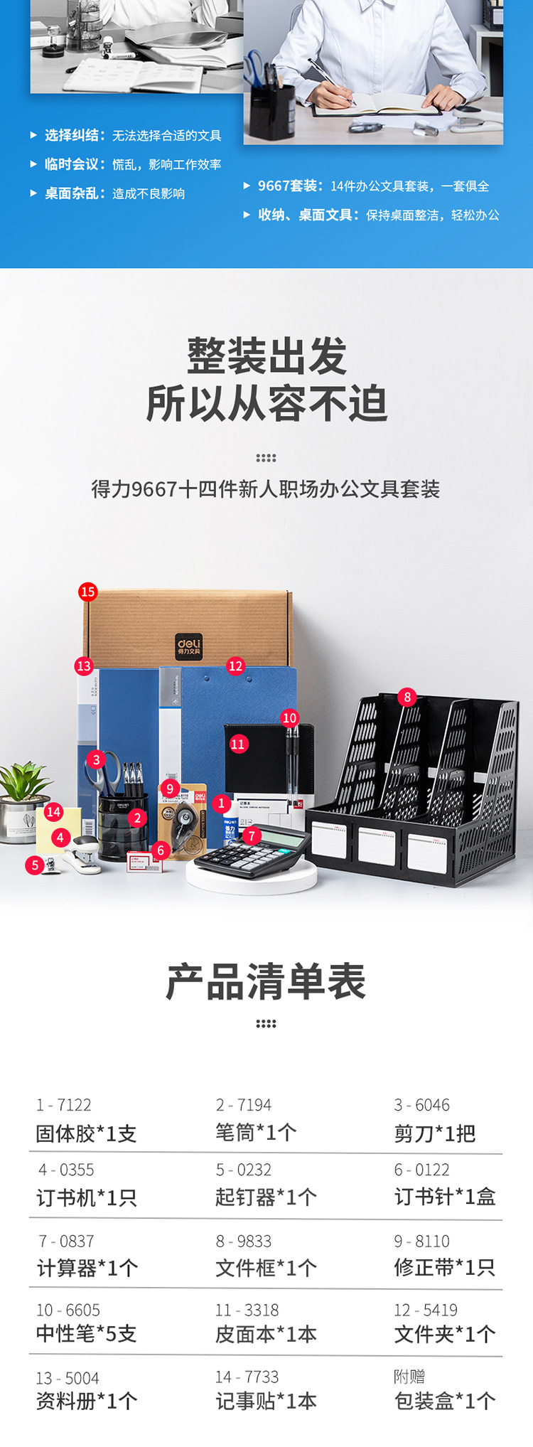 得力(deli)新人入职套装 办公文具12件套/文具礼包/文具礼盒套装 办公用品