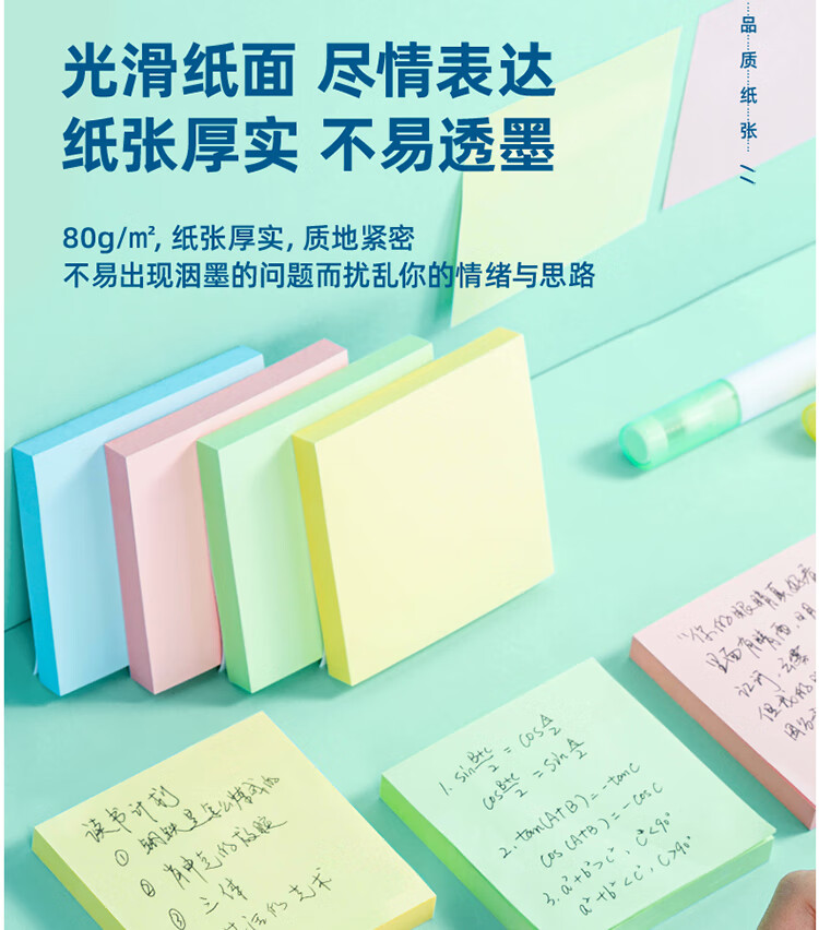 得力(deli)400张4色浅调系列淡彩简约便利贴 粘性强书写顺滑76*76mm便签本/记事贴 办公用品