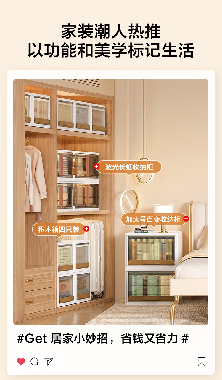 京东京造 收纳柜 收纳箱床头柜子储物柜箱儿童衣柜衣服零食【免安装】